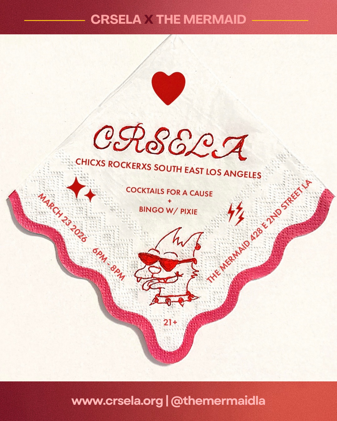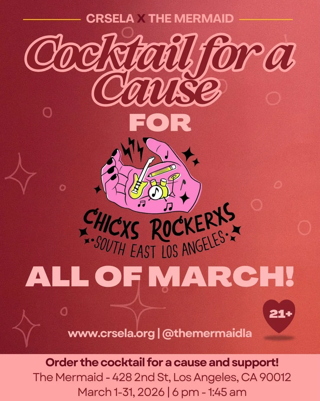 Calling all 21+ supporters of CRSELA's Summer Camp! Order a specialty Cocktail for a Cause at The Mermaid anytime during the month of March and support our free, annual Summer Camp where 60 youth form bands, attend workshops, write original, songs and perform live!Also donate to the P.P.T.A.’s upcoming yard sale which will also raise funds for camp and collect clothing donations for the Queer Prom!