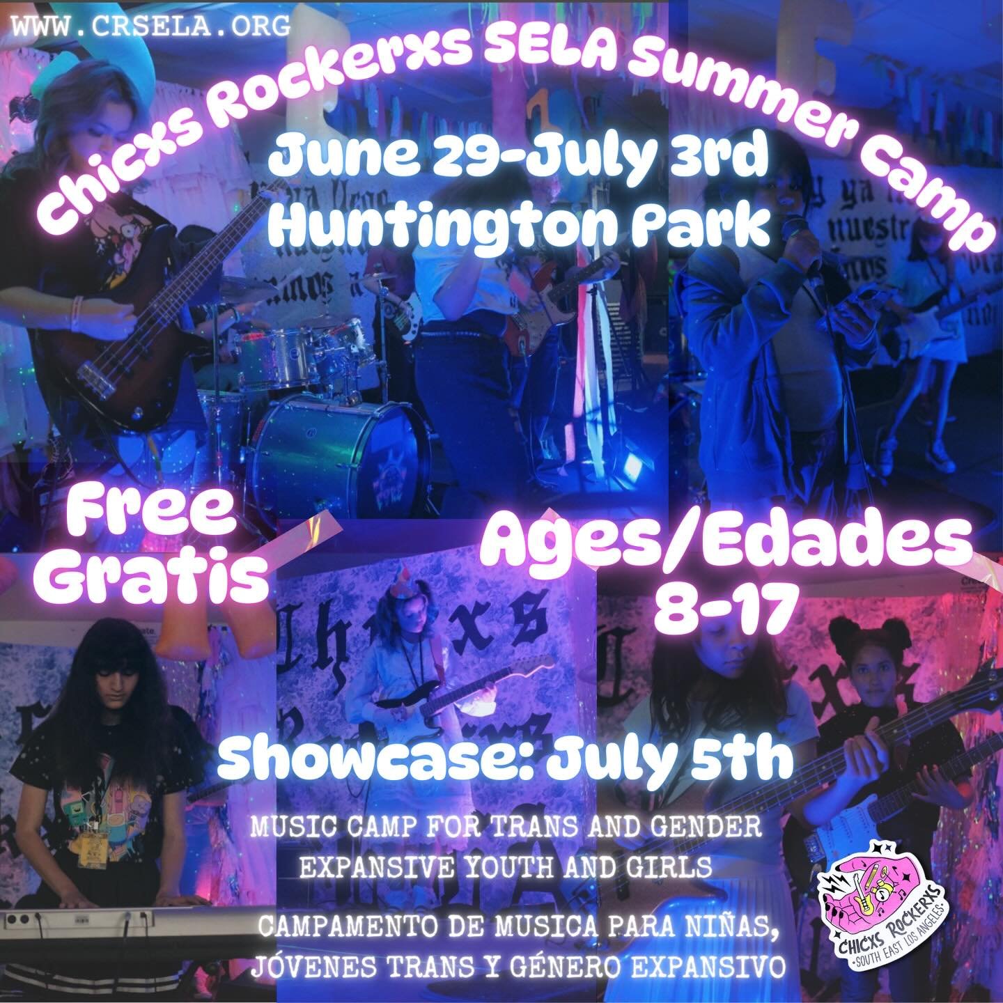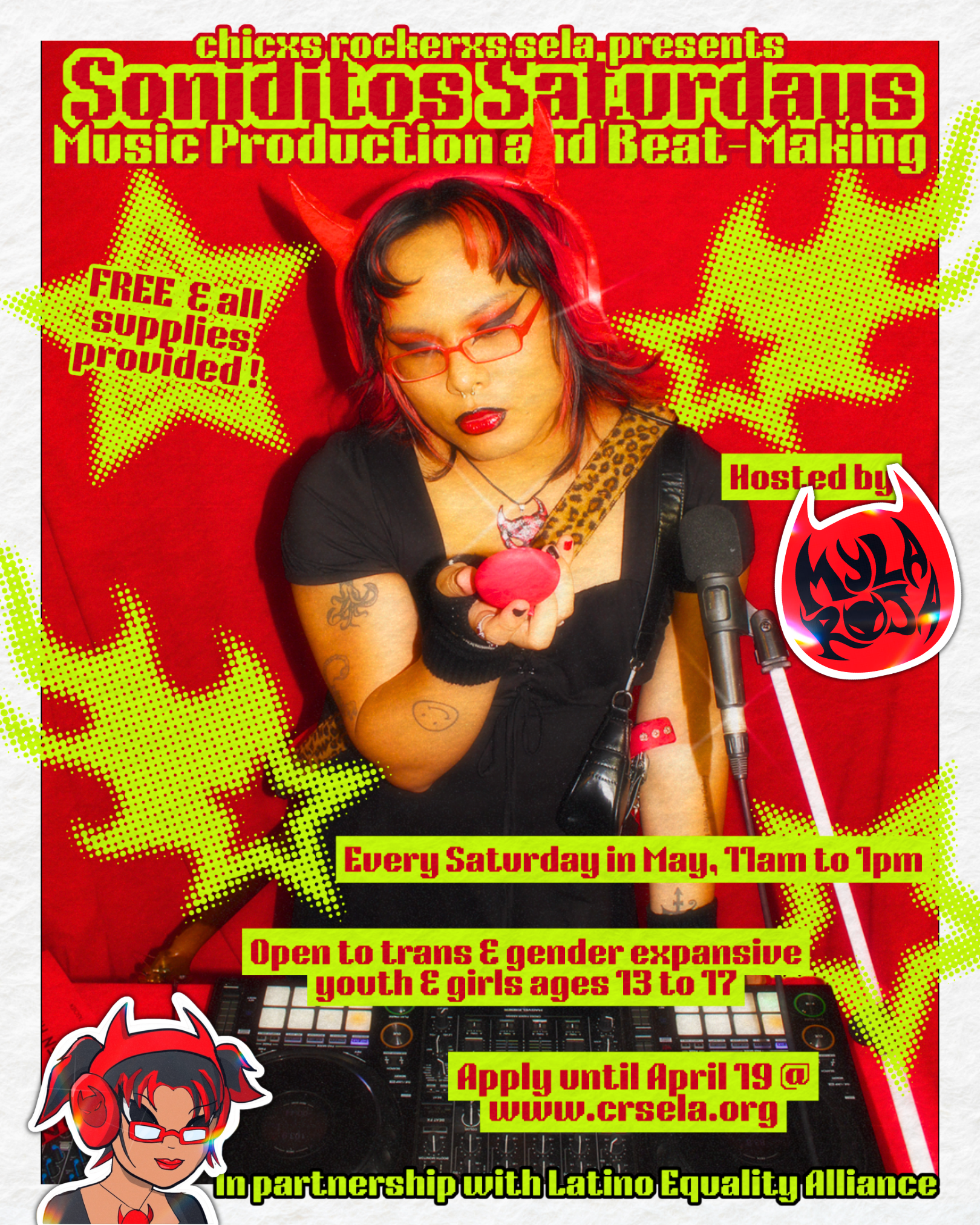 Chicxs Rockerxs South East Los Angeles (CRSELA) provides music, mentorship, and social justice programming to trans and gender expansive youth and girls in Southeast Los Angeles.